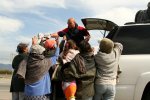 As we drove along the Mexican highway we noticed groups of people every 200 yards or so that were signalling to vehicles by waving hats or scarves in an up-and-down motion. Curiosity got the better of us and we stopped to find out why. They were asking for Christmas donations. Many people returning to Mexico for the holidays take clothes and toys down with them (just as we were doing). So we unloaded a box or two worth of stuff and gave it to these people and their families.