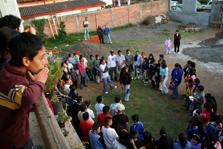 Gift exchange at the school. Names were called at random, and after gifts were exchanged they would have to give each other a hug. Embarrasment ensued.