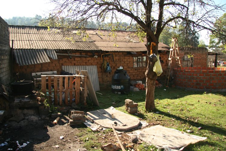 The back of Gina's house. Water heater on the far left, new water collector being built on the far right.