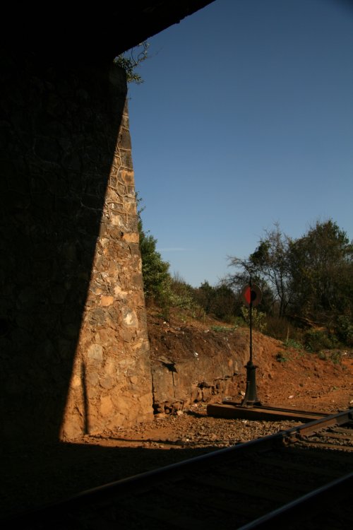 Where the highway crosses over the train tracks.