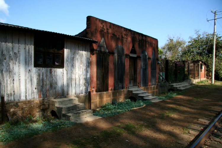 The train tracks on the edge of town.